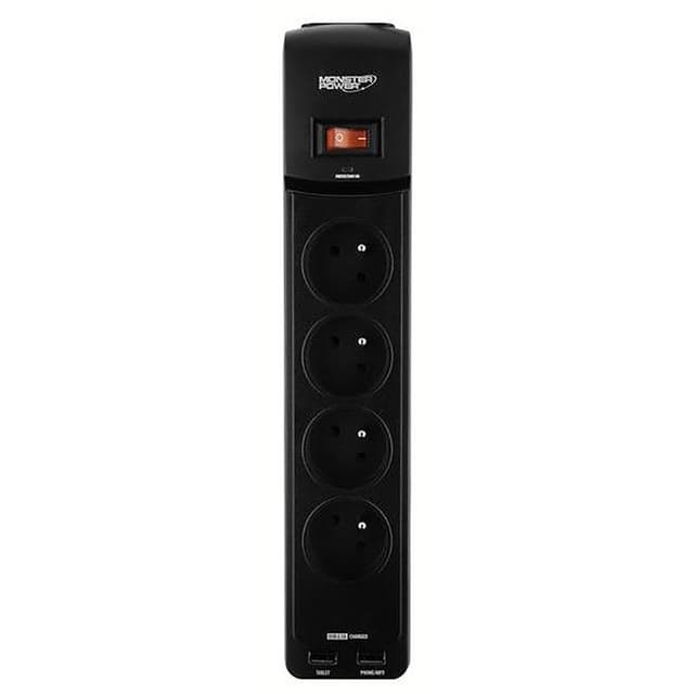 Monster Extreme ylijännitesuoja suojaa kodin elektronisia laitteita. Ylijännitteen sattuessa laite on suojattu tulipaloja vastaan. Neljä pistoketta.