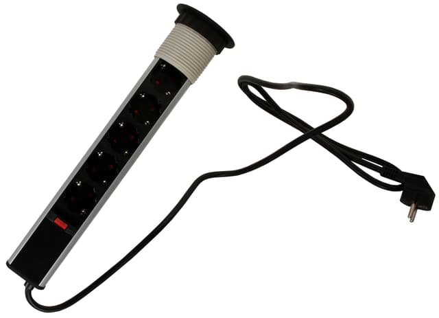 Proove jatkojohdossa on viisi pistoketta. Käytännöllinen jatkojohto voidaan upottaa pöytä- tai työtasoon ja tarvittaessa vetää esiin käyttöä varten.