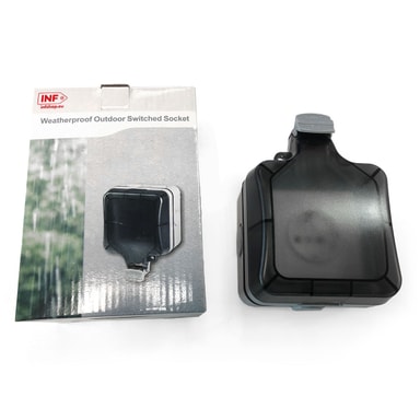 Vesitiivis ja pölytiivis seinäpistorasia: IP66-luokituksensa ansiosta tämä ulkopistorasia tarjoaa täyden suojan vedeltä ja pölyltä ja on turvallinen haastavissakin sääolosuhteissa.