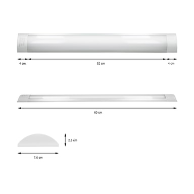 Toimituksen laajuus:1 x LED toimistovalaisin 60 cm 18WTekniset tiedot:Malli LED toimistovalaisin 18W 60cm Lämmin valkoinenKoko: 60 x 7,5 x 2,3 cm.Materiaali: alumiini + polykarbonaattiRunko: AlumiiniKansi: maitomainen polykarbonaattiLED-tyyp