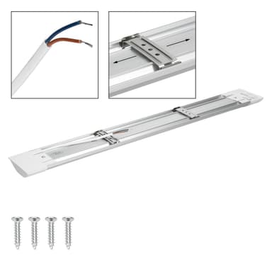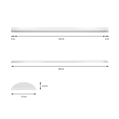 Toimituksen laajuus:4 x LED toimistovalaisin 150 cm 45WTekniset tiedot:Malli LED toimistovalaisin 45W 150cm viileä valkoinenKoko: 150 x 7,5 x 2,3 cm.Materiaali: alumiini + polykarbonaattiRunko: AlumiiniKansi: maitomainen polykarbonaattiLED-t