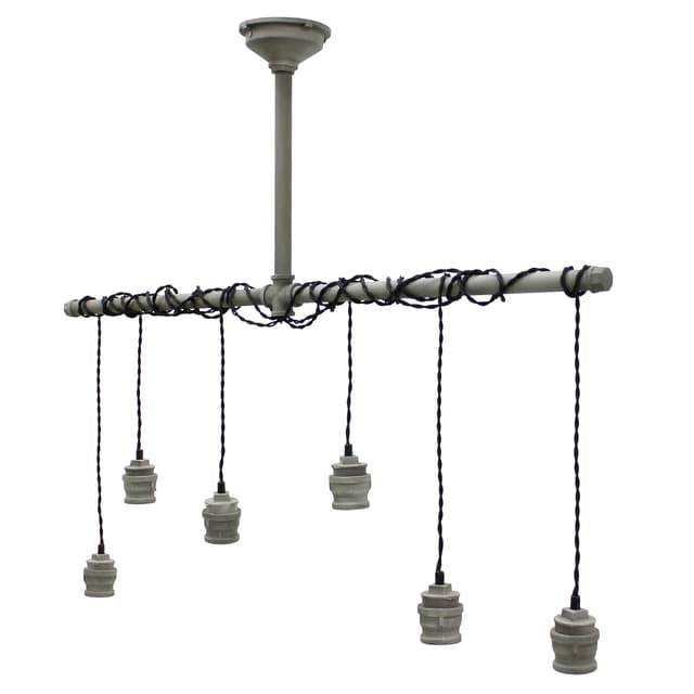 Tämä maalaismainen riipusvalaisin osoitteesta ECD Germany tuo viileän retroilmeen kotiisi. 6-lamppuvalaisimessa on vanhojen hehkulamppujen pistorasiat, jotka on valmistettu metallista ja viimeistelty betonilla. Voit jakaa ja käämittää erittäin pitkät kaapelit erikseen kahteen varteen ja määrittää näin itse lamppujen korkeuden.