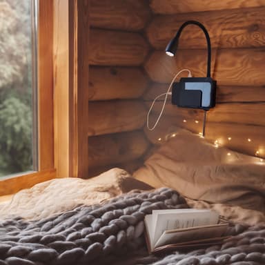 Erittäin tyylikäs ja laadukas 12 V valaisin, jossa on USB-posrtti esim. matkapuhelimen latausta varten.