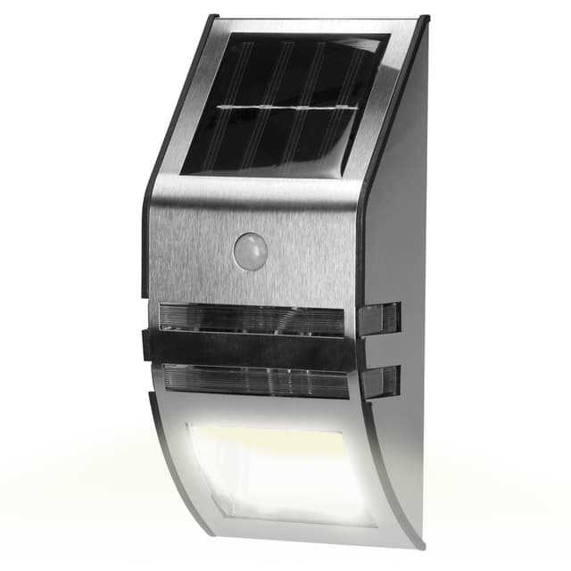 LED-valaisin, ruostumattomasta teräksestä valmistettu kotelo ja IP65 on varustettu nykyaikaisilla aurinkoteknologian ja pitkäikäinen LEDit. Riippuen auringonvalo, sisäänrakennettu 400 mAh akku on ladattu päivällä kautta aurinkopaneeli ja saat jopa 6 tuntia valoa pimeydessä. Kun aurinko laskee, LEDit automaattisesti syttyvät sisäisellä Sunset kytkintä.