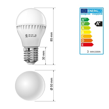 Toimituksen laajuus:4 x 3W E27 LED-lamppu viileä valkoinenTekniset tiedot:Valmistaja/malli: E27 LED-lamppu tyyppi 2Energiatehokkuusluokka: A+Valovoima: 200 lumeniaKulutus watteina: 3 wattiaSädekulma: 270Elinikä tunteina: 50,000 tuntiaVäri: