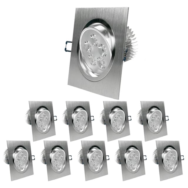 Toimituksen laajuus:10 x 5W lämpimän valkoiset LED-valonheittimet.Tekniset tiedot:Valovoima: 334 lumeniaVastaavuus halogeeniin: noin 30WTeho: 5WReikäleikkaus: noin 95 mmAsennussyvyys: noin 65 - 70 mmPaino: noin 280 gValaisimen mitat LxS: no