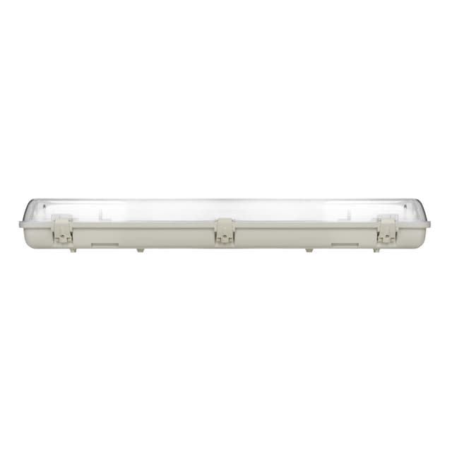 Toimituksen laajuus:1 x kosteussuojattu valaisin 2 x 60 cm 2 x 60 cmHuomaa! LED T8 -putki ei sisälly toimitukseen!Tekniset tiedot:Kotelon materiaali: muovi / polykarbonaattiKotelon väri: Harmaa / läpinäkyväValonlähde: 2x LED T8Käytt