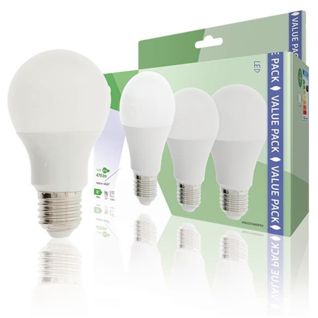 A60 LED -lamppu, jossa on E27-kanta, 470 lumenin valoteho ja erittäin pieni 5,3 watin virrankulutus. Lamppu korvaa perinteiset 40 watin hehkulamput ja säästää heti energiaa. Lamppu antaa lämpimän valkoista valoa, jonka värilämpötila on 2 700 Kelvin-astetta.