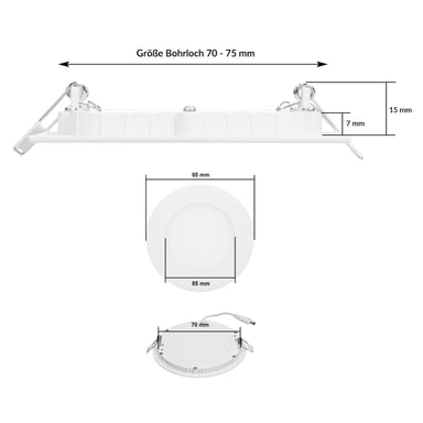 Toimituksen laajuus:1 x LED-paneeli upotettu valonheitin 3 W neutraali valkoinen pyöreäTekniset tiedot:Valovoima: 124Lm (neutraali valkoinen)Vastaavuus halogeeniin: noin 25WTeho: 3WReikäleikkaus: noin 70 mmAsennussyvyys: noin 15 mmMuoto: p