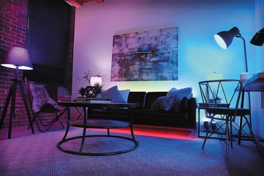 Tunable White -ominaisuudella luot aina tunnelmaan sopivan valaistuksen. Voit himmentää valoa tai valita sille sopivan värilämpötilan useista viileistä ja lämpimistä sävyistä 2700 - 6500 K väliltä.