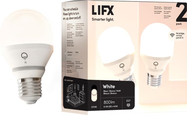 LIFX -LED-älylampulla luot mieleistäsi valaistusta, halusit sitten rentoutua, työskennellä tai esimerkiksi lukea. Se tarjoaa miellyttävät valkoiset värisävyt, ja voit ohjata sitä wifi-yhteyden ja älysovelluksen kautta. Pakkaukseen sisältyy kaksi lamppua.