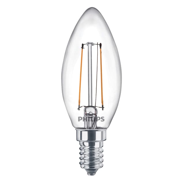 Vintagetyylinen Philips Classic LED -lamppu antaa kauniin valkoisen valon ja kuluttaa 80 % vähemmän energiaa halogeenilamppuun verrattuna ja sen käyttöikä on 10 kertaa pidempi. Siinä on E14-kanta.