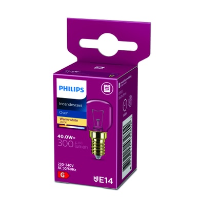 Varusta uunisi kirkkaalla valolla Philips-uunilampun avulla, joka sopii esimerkiksi katto-, seinä- tai takavaloksi. Lamppu soveltuu korkeisiin käyttölämpötiloihin jopa 300 °C lämpökestävyytensä ansiosta.