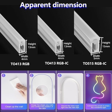 Joustava ja leikattava: Tämän neon LED-nauhan silikonirakenne mahdollistaa poikkeuksellisen joustavuuden, jonka avulla voit taivuttaa ja muotoilla sen sopimaan mihin tahansa muotoon tai malliin. Leikattavan rakenteen ansiosta 8,4 cm:n välein (5 LEDiä), voit helposti mukauttaa pituuden sopimaan täydellisesti omiin tarpeisiisi. Olitpa hahmottelemassa arkkitehtonisia piirteitä, luomassa mukautettuja opasteita tai lisäämässä korostuksia huonekaluihin, tämä nauha tarjoaa vertaansa vailla olevaa mukautuvuutta. Sen joustavuus ja leikattava luonne tekevät siitä ihanteellisen valinnan tee-se-itse-projekteihin, joiden avulla voit toteuttaa luovat visiosi helposti ja tarkasti. Mahdollisuus räätälöidä pituus varmistaa saumattoman ja ammattimaisen lopputuloksen joka kerta. Tämä joustava RGB neon LED-nauha on helppo asentaa ja muokata.