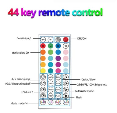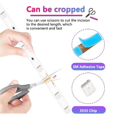 Helppo asennus ja ohjaus: Uusien LED-nauhavalojen asentaminen on helppoa. Joustavan muotoilun ansiosta voit helposti taivuttaa ja muotoilla nauhan sopimaan mihin tahansa tilaan. Irrota vain liimapohja ja kiinnitä nauha puhtaalle, kuivalle pinnalle. Mukana toimitettu EU-pistoke tarjoaa vakaan virransyötön. Ohjaa valoja 44-näppäimisellä kaukosäätimellä tai Bluetoothin kautta käyttämällä erillistä sovellusta. Sovellus tarjoaa edistyneitä mukautusvaihtoehtoja, kuten väripaletteja, dynaamisia valaistustehosteita ja ajastinasetuksia. Nauha voidaan leikata 50 cm:n välein (8 LEDiä) tarpeidesi mukaan. Yhteensopiva eri pintojen kanssa ja helppo säätää. Yhteensopiva Huawei, Samsung, APPLE, Garmin kanssa.