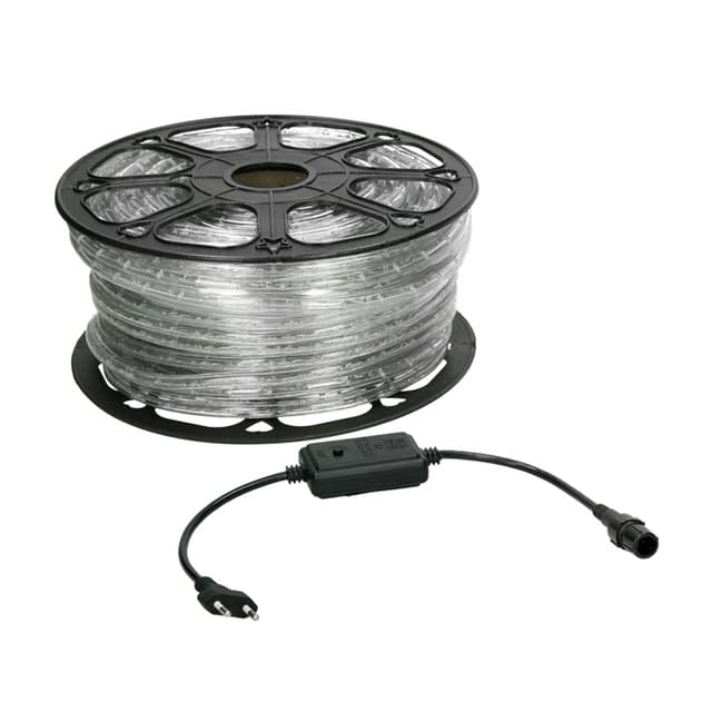1 x 30 m LED-köysivalo RGB, jossa on asennettu virtalähde ja päätykappaleet.