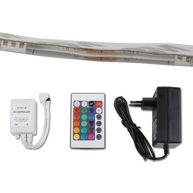 Toimituksen laajuus:1 x kaukosäädin 24 painiketta1 x RGB-ohjain1 x RGB SMD-palkki 5m1 x virtalähde 2ALED-palkin tekniset tiedot:LEDit: 5050 SMD LEDitSäteilykulma: 180LED-määrä: 30 LED/mValaisimen teho: 30 LEDiä/m (360 lm /per m)Jännite: 12