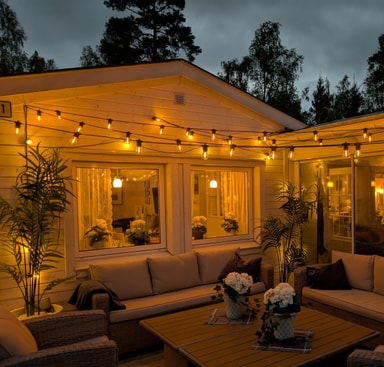 Rakenna tunnelmaa ulkona ympäri vuoden. Premium-valosarjoissamme on vaihdettavat E27-lamput, ne kestävät pohjoismaista ilmastoa ja niitä voi helposti laajentaa.Tutustu ominaisuuksiin