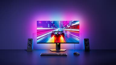 Nanoleaf 4D PC Screen Mirror -valonauha liitetään tietokoneen USB-C-porttiin. Se peilaa näytön värejä reaaliajassa, reagoi peleihin tai synkronoituu musiikkiin. Sopii enintään 32" näyttöön, sisältää mukautettavia efektejä ja leikattavan asennuksen.Tutustu ominaisuuksiin