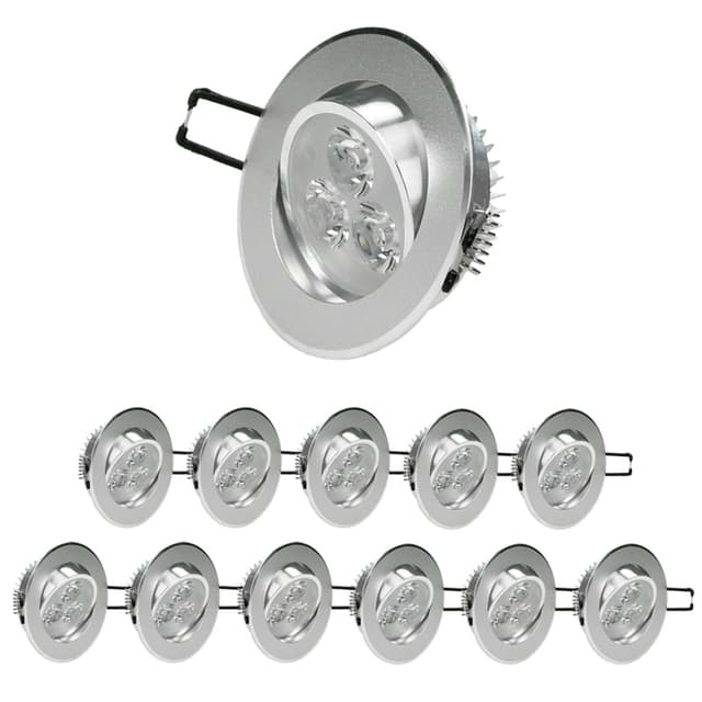 Toimituksen laajuus:12 x 3W viileänvalkoinen LED upotetut valonheittimet.Tekniset tiedot:Valovoima: 226 lumeniaVastaavuus halogeeniin: noin 25WTeho 3WReikäleikkaus: noin 65 mmAsennussyvyys: noin 40 - 45 mmPaino: noin 76 gValaisimen mitat: n