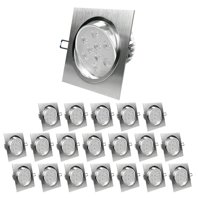 Toimituksen laajuus:20 x 9W viileän valkoiset LED-valaisimet.Tekniset tiedot:Valovoima: 676 lumeniaVastaavuus halogeeniin: noin 50WTeho: 9WReikäleikkaus: noin 120 mmAsennussyvyys: noin 7 - 80 mmPaino: 428 gValaisimen mitat LxS: n.