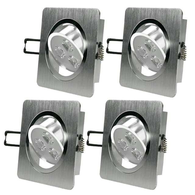 Toimituksen laajuus:4 x 3W lämpimän valkoiset LED-valonheittimet.Tekniset tiedot:Valovoima: 220 lumeniaVastaavuus halogeeniin: noin 25WTeho: 3WReikäleikkaus: noin 70 mmAsennussyvyys: noin 40 - 45 mmPaino: 134 gValaisimen mitat LxS: 95 x 95