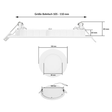 Toimituksen laajuus:5 x LED-paneeli upotettu valonheitin 6W lämmin valkoinen pyöreäTekniset tiedot:Valovoima: 312Lm (lämmin valkoinen)Vastaavuus halogeeniin: noin 35WTeho: 6WReikäleikkaus: noin 105 mmAsennussyvyys: noin 20 mmMuoto: pyöreä