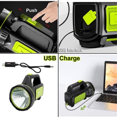 Kä@@ dessä pidettävä taskulamppu USB-ladattava LED-taskulamppu Erittäin kirkas ulkovalonheitin Korkea kirkkaus: Suunniteltu korkealaatuisilla LED-valohelmillä, jotka tarjoavat sinulle kirkasta valoa 3 valaistustilaa: Vahva valo/heikko valo + vahva va
