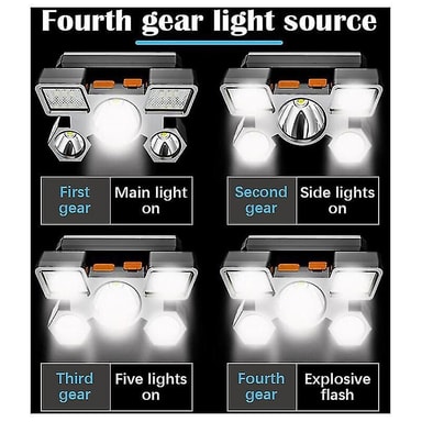 Ladattava otsalamppu, jossa on säädettävä otsapanta. Otsalampussa on 5 LED-valoa ja 4 eri valotilaa. Otsalamppu on vedenkestävä ja kestää kovia sääolosuhteita.