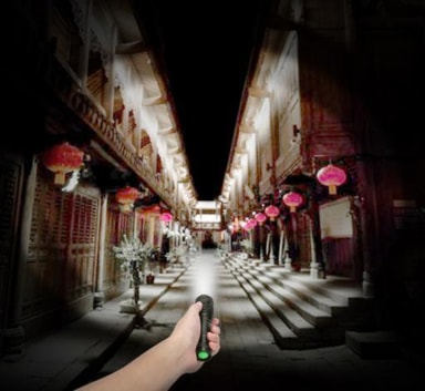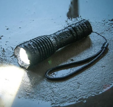 Vedenpitävä ja kestävä: Taskulamppu kestää sekä sadetta että lunta ja muita ulkoisia rasituksia.