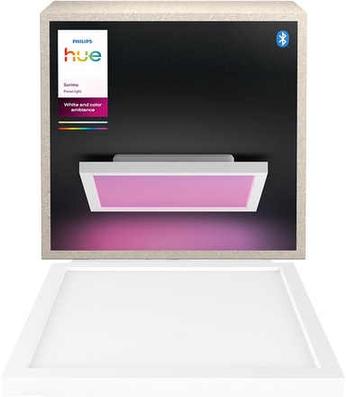 Philips Hue Surimu -neliöpaneeli tarjoaa miljoonia värejä. Se tuottaa värejä lämpimästä valkoisesta viileään päivänvaloon. Se on yhteensopiva Philips Hue -sovelluksen ja Philips Hue Bridgen kanssa.Tutustu ominaisuuksiin