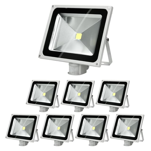 Toimituksen laajuus:8 x 50W SMD LED-valonheitin liiketunnistimella viileän valkoinen.Tekniset tiedot:Suojausluokka: IP65 (suojattu vesisuihkuilta)Kotelo: ruiskuvalettua alumiiniaSädekulma: noin 120Jännite: 220-240V ACTeho: 50WTehonkulutus: M