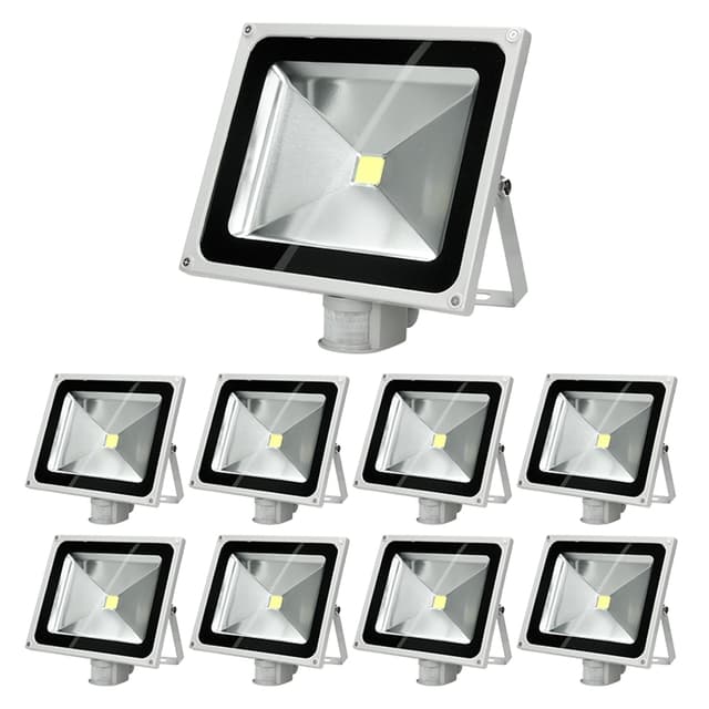 Toimituksen laajuus:9 x 50W SMD LED-valonheitin liiketunnistimella viileän valkoinen.Tekniset tiedot:Suojausluokka: IP65 (suojattu vesisuihkuilta)Kotelo: ruiskuvalettua alumiiniaSädekulma: noin 120Jännite: 220-240V ACTeho: 50WTehonkulutus: M