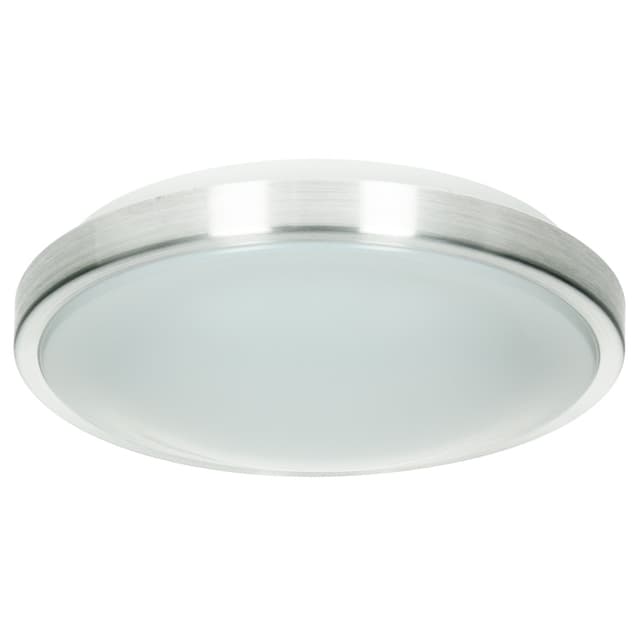 Tekniset tiedot: Valmistaja/malli: LED-kattovalaisin Energiatehokkuusluokka: A (asteikolla A++-E). Kirkkaus lumenina / diffuusorin kanssa: 725 lm Kulutus watteina: 12 Watt Vertailuarvo: 12 W vastaa noin 60 W (hehkulamppu). Elinikä tunteina: 50,000 tuntia Kytkentäjaksot: 20 000 Suojausluokka: IP53 Värilämpötila kelvineinä: 2800 K / lämmin valkoinen Käynnistysaika: < 1 sekunti Himmennettävä: Ei Mitat: Ø: 30 cm, Korkeus: 9 cm. Hydragyrum: 0 g Hg / elohopea Virrankulutus: 12kWh / 1000h Materiaali: muovi, metalli Väri: alumiini matta, valkoinen Jännite: 220-240 Volt