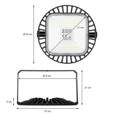 Tämä ECD Germany LED-korkeavalaisin on täydellinen valonlähde varastoihin tai tehtaisiin. Korkea valaisin sopii hyvin myös liiketiloihin.