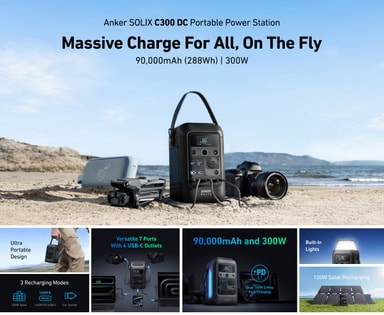 Anker Solix C300X DC -virta-asema tarjoaa 300 W huipputehon, 140 W kaksisuuntaisen pikalatauksen ja sisältää AC230V- ja DC12V-pistorasiat. Sen mukana toimitetaan 60 W aurinkopaneeli, joka on ihanteellinen leirintään ja matkustamiseen.Tutustu ominaisuuksiin