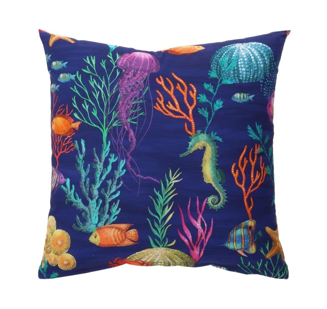 Tyyny HOLLY 45x45cm, vetoketjulla, vedenalainen maailma, kangas 100% puuvillaa, kangas 487. HOITO: tyyny voidaan pestä 30 asteessa pesukoneessa.
