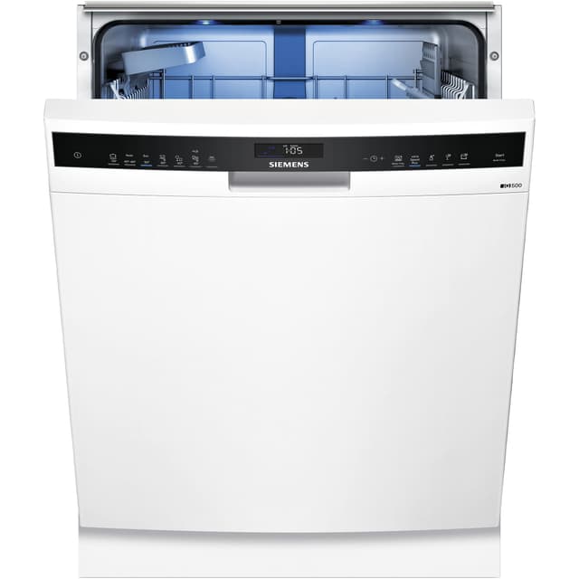 Kalusteisiin integroitava Siemens iQ500 -sarjan SN457W02IS astianpesukoneen VarioSpeed Plus-toiminto pesee astiat kirkkaan puhtaiksi lyhyemmässä ajassa. Suuren kapasiteetin astianpesukoneessa on tehokas Zeolith-kuivaus.