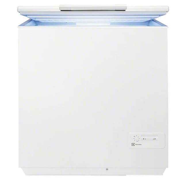 Kestävä Electrolux-arkkupakastin EC2230AOW1 joka voidaan edistyksellisen lauhduttimen ansiosta sijoittaa myös tiloihin, jossa lämpötila laskee lähelle nollaa astetta.
