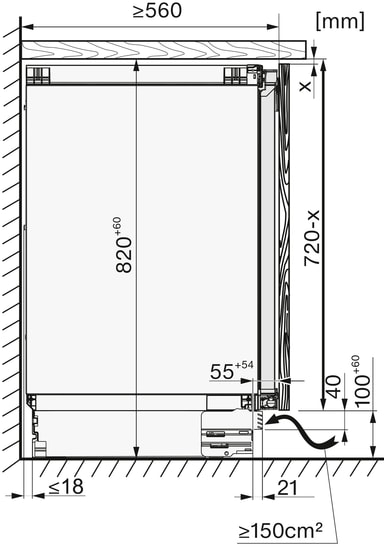 • Vaatii vähintään 72 cm korkuiset kalusteovet.