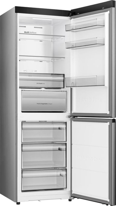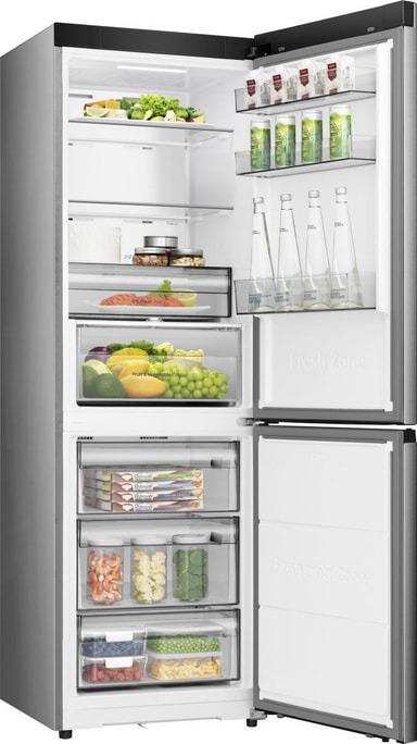 Hisense RB3K330SEIE vapaasti seisova inox-jääkaappipakastin on suunniteltu yhdistämään moderni muotoilu, käytännöllinen ruoan säilytys ja pitkäaikainen tuoreus. Litteän istuvuuden, älykkään sisustuksen ja ensiluokkaisen jäähdytyksen ansiosta se on tehty keittiöihin, joissa tila ja suorituskyky ovat avainasemassa.