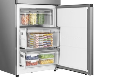 Pakastimen alaosassa pakasteet ovat helposti saatavilla. Syvät ulosvedettävät laatikot helpottavat sisällön järjestämistä kumartumatta tai kaivelematta pinottuja tavaroita, olivatpa kyseessä sitten pakastemarjat, leipä tai tähteet.