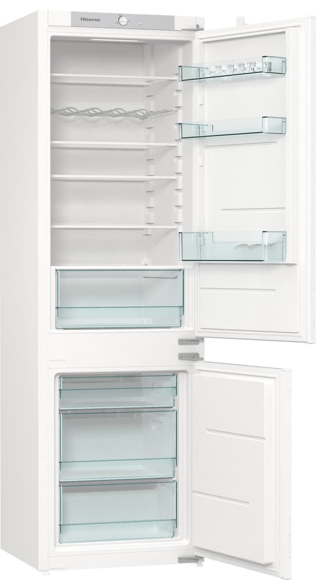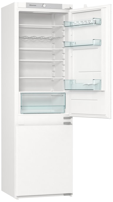 Integroitavassa Hisense-jääkaappipakastimessa on tilaa vaikka koko viikon ruokatarvikkeille. Jääkaapissa on 189 litran tilavuus, suuri laatikko vihanneksille ja hedelmille, kirkas LED-valo sekä teline viinipulloille. 71-litraisen pakastimen ominaisuuksiin lukeutuu FastFreezing-järjestelmä, jonka ansiosta ruoat säilyttävät makunsa paremmin.