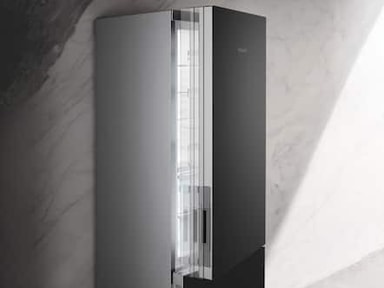 Jääkaapin ovesta ei aina löydy tarpeeksi tilaa korkeille pulloille ja tölkeille. Kaksiosaisen Miele FlexiBoard ‑lasihyllyn ansiosta voit nyt säilyttää niitä myös tavallisilla hyllyillä. Tämä käy helposti: liu'uta FlexiBoard-hyllyn etuosa sen takaosan alle. Näin alapuolisen hyllyn etuosaan jää tilaa korkeille pulloille tai maitotölkeille. Hyllyn takaosa on edelleen käytettävissä ruokien säilytykseen. Näin hyödynnät jääkaapin koko sisätilan.