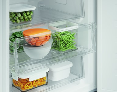 Pakastin hyödyntää käytettävissä olevan tilan tehokkaasti kätevillä ja fiksuilla säilytysratkaisuilla. Tasainen lämpötila pakastaa ruoan nopeasti ja turvallisesti.