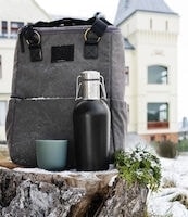 KylryggsäckSnygg ryggsäckskylbag i ordentlig canvas, stort huvudfack och tre mindre fickor för tillbehör. Ryggsäcken har reglerbara remmar och håller picknicken välkyld under hela dagen. Detaljer i PU-läder.Tutustu ominaisuuksiin