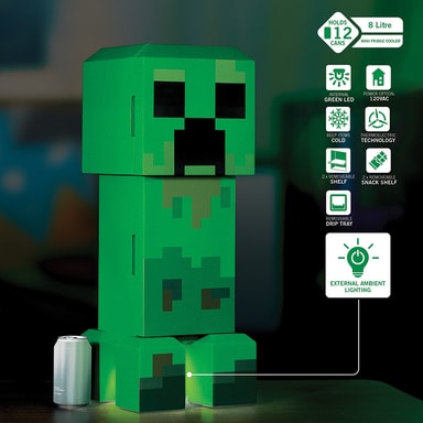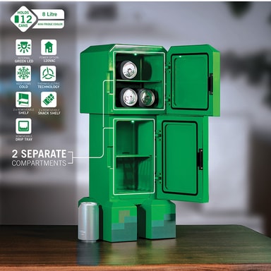 Ukonic Minecraft Figural Creeper -minijääkaappi on virallisesti lisensoitu. kompakti mutta katseenvangitseva kylmälaite, joka yhdistää toimivan jäähdytyssuorituskyvyn ja hahmoteemaisen muotoilun. Se vetää kätevästi enintään 12 tavallista virvoitusjuomatölkkiä, ja siinä on erillinen lokero myös välipaloille.