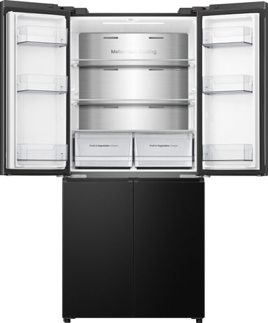 Jääkaapissa ja pakastimessa on runsaasti tilaa kaikentyyppisille ja ‑muotoisille elintarvikkeille. Neljä ovea avautuu pitkälle, joten näet sisällön kätevästi yhdellä silmäyksellä.