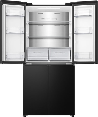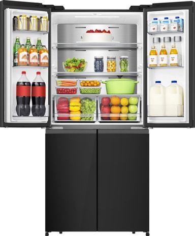 Jääkaapissa ja pakastimessa on runsaasti tilaa kaikentyyppisille ja ‑muotoisille elintarvikkeille. Neljä ovea avautuu pitkälle, joten näet sisällön kätevästi yhdellä silmäyksellä.