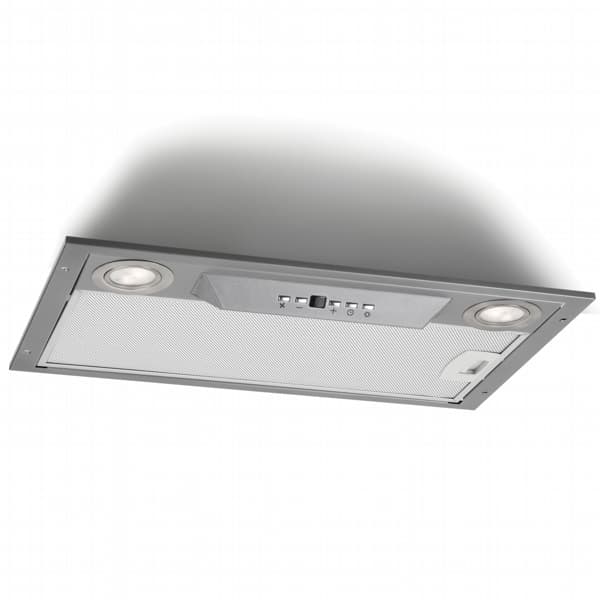 Integroitu liesituuletin yläkaappiin, mahtuu 70 cm kaappiin, teräs, ilmamäärä 250-644 m3/t, äänitaso 46-66 dB, energialuokka A